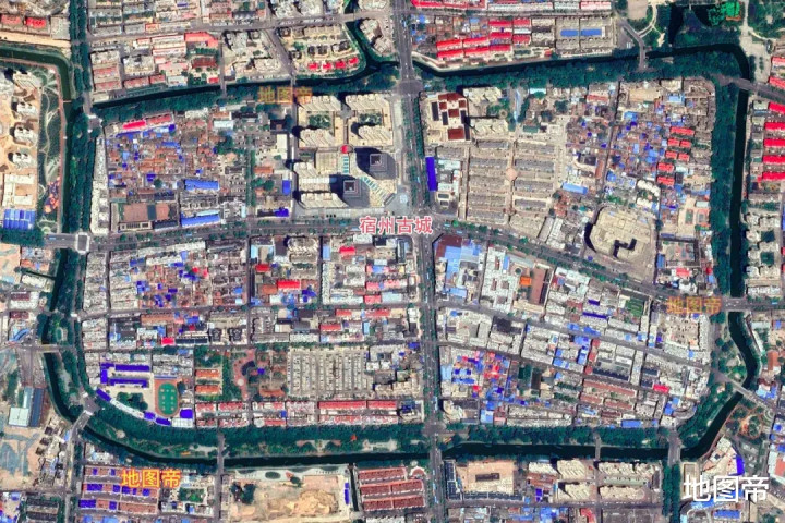 砀山古城,外圆内方,城墙呈方形,面积0.62平方千米,护城河呈圆形,面积1.6平方千米(环湖公路内)。砀山古城开四门:景云门(东),永保门(南),瑞洛门(西),企宁门(北)。