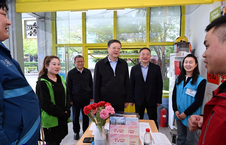 在长宁区华阳街道的“暖新巢”新就业群体驿站,陈吉宁同快递小哥、外卖骑手亲切交流,询问生活工作情况,了解问题裉节所在。市领导在接访时认真倾听新就业群体代表的诉求,同他们分析情况、梳理政策,并与有关区、部门、单位负责人深入会商。
